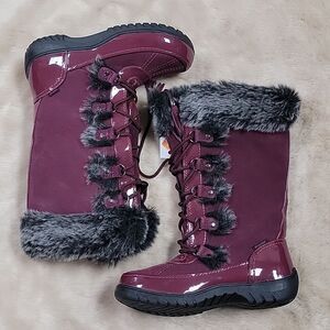 New without box, burgundy boots, very warm trendy winter snow boot, leather upper, faux fur, full laces with tassels.