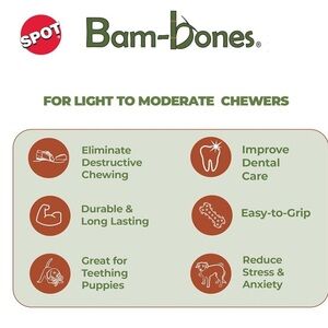 Keep your pup entertained with the SPOT Bam-Bones Fish Chew Toy! Made from durable bamboo and nylon fibers, this sustainable chew toy is perfect for light to moderate chewers. Shaped like a fish with a salmon flavor your dog will love, it satisfies natural chewing instincts while promoting healthy teeth and jaw muscles. Its textured surface helps control plaque and tartar buildup, encouraging better dental health. Ideal for puppies and small adult dogs under 30 lbs, this 5.5-inch toy is a must-have for your furry friend’s playtime and oral care routine.