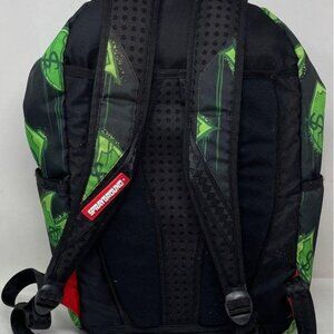 Dimensions: 18" x 6" x 11.5" • Front zipper pocket • Side pockets • Zippered Stash pocket • Separate velour sunglass compartment • Ergonomic mesh back padding • Adjustable Straps for custom sizing • Red zippers with metal hardware • Metal "Sprayground Authentic" badge • Slide through back sleeve connects to carry-on luggage to free your hands