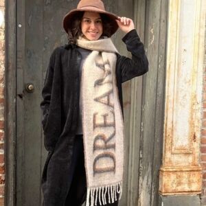 Be inspired while you bundle up with this dreamy warm oversized scarf! Super soft and so stylish, it's the perfect accessory for layering in chilly weather. Enjoy the compliments you get while staying cozy in this blissfully soft oversized woven scarf. It features a gentle drape, fringed edges, and an uplifting message woven into the design. Perfect for layering with your favorite cold-weather looks, this scarf adds comfort and confidence to every outfit. Great unique gift for yourself or a friend.