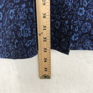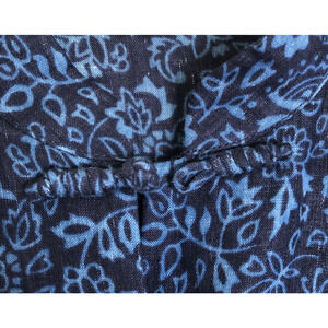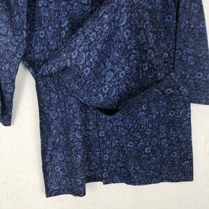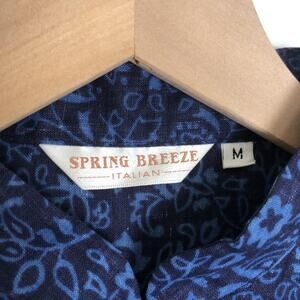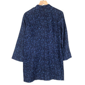 This beautiful SPRING BREEZE Italian tunic in size Medium is a stylish and comfortable option for women looking for a casual and relaxed fit. Made from a blend of linen and cotton, this blue batik print button-up tunic features a mandarin collared neckline, side slits, and 3/4 sleeves. The woven fabric and breathable design make it a versatile piece that can be worn in various occasions. With a solid pattern and unique button accents, this tunic combines bohemian style with a touch of sophistication.