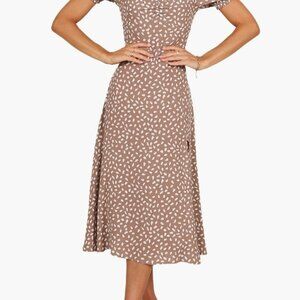 SPRING DRESS- Franklin Print Puff Sleeve Midi Dress