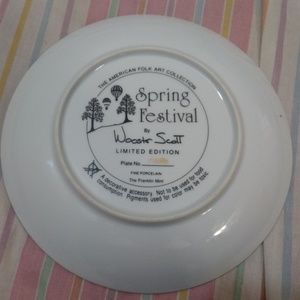 Franklin Mint one collectible plate. The plate is spring festival by Wooster Scott, limited edition plate no F3436. It is in very good condition.