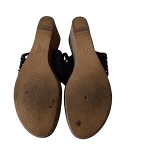 SPRING STEP Black Leather Comfort Sandals Wedge Thong 38/8 Summer Vacation Beach