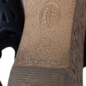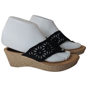 SPRING STEP Black Leather Uppers Cutouts Comfort Shoes Sandals Wedge Thong