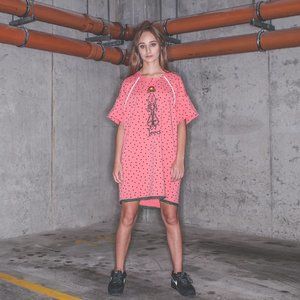 A Very spring and summer pink dress! Ideal 24/7 garment, always ready to go outfit! A short sleeve dress featuring a rounded, crew neckline and loose fitted silhouette with pockets on sides.
