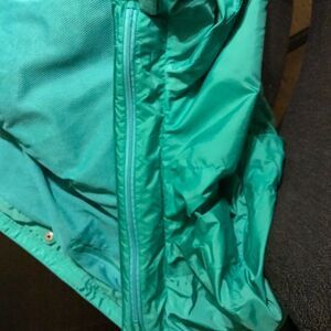 Cute lightweight sea green jacket by the GAP. Concealed drawstring waist, concealable hood within Collar, internal pockets, and fully lined. Excellent condition. Maybe worn once.