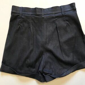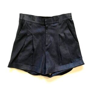 SPRWMN Deep Pleat Trouser Leather Shorts Womens Small Navy Blue High Rise Cuffed