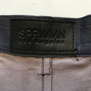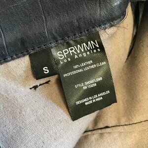Women's SPRWMN Deep Pleat Leather Shorts in a size S. Pleated in lamb leather the deep pleat shorts are a sleek off-duty staple. Zip fly and hook closure. Side slash pockets. Originally $598. Easily dressed up or down - Fast Same Day Shipping.