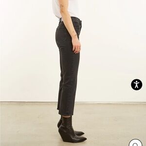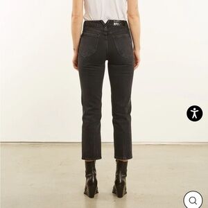 EUC size 28. Meet our Crop Straight Leg Denim. A high-rise straight leg jean that hugs the natural waist. Features a relaxed fit down the leg ending with clean hem above the angle. Wear these with a fitted tee and flats for a classic look, or a chunky sweater and sneakers for a dressed down vibe.