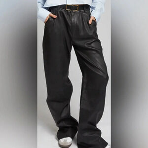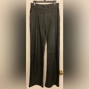 SPRWMN Leather Straight Leg Trousers Black Size Small. Excellent pre-owned condition. No flaws. Natural creases to leather.