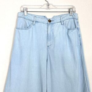 SPRWMN Light Blue Chambray Wide Leg Pants S Boho Lightweight High Waist Casual