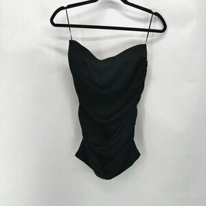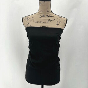 SPRWMN Strapless Top Womens S Black Knit Ruched Sides Date Night Club Party Glam