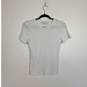 SPRWMN White Ribbed Crew Neck Short Sleeve Tencel Baby Tee Large