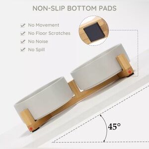 Unique bamboo stand can effectively prevent food from spilling and keep the floor clean and tidy. Non-Slip bowl base, making it easy to pick up and put down.