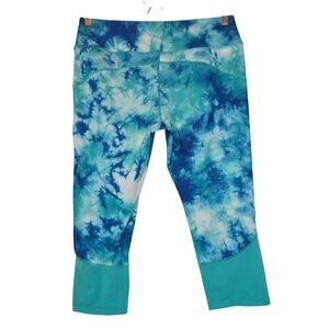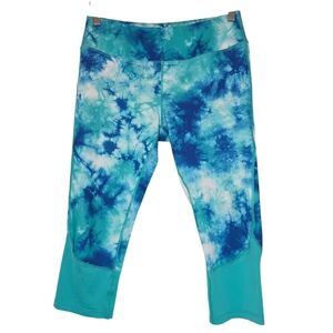 SPYDER Capri Leggings Blue Tie Dye Mesh Panel Crop Activewear Pants Women Medium
