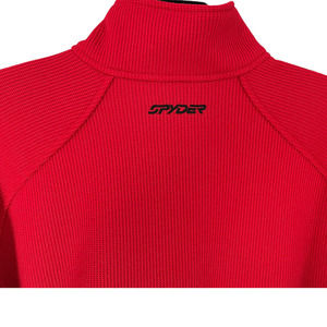 Embroidered Spyder bug and word logos. Reverse coil center front zipper. Stretch fleece at the underarm and side of the body. Breathable and retains body warmth.