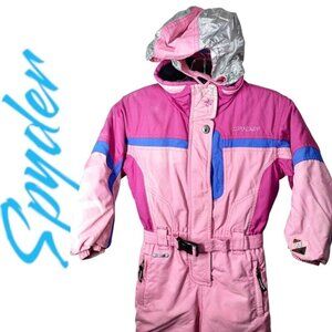 SPYDER Vintage Girl's Pink Retro Ski Snow Jumpsuit Stowed Hood, Size 5