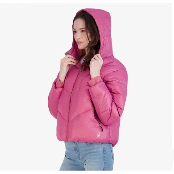 SPYDER Womens Super Puff Hooded Jacket Puffer Coat Packable Rose Wine Pink