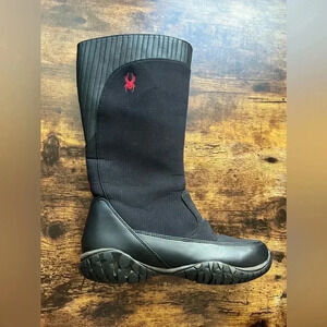 Spyder ACS Rain Boots Womens Size. Black Full Zip Vibram Sole. Tall Boot. Side zip. Waterproof