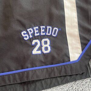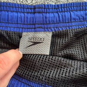 SPeedo Mens Swim Shorts Trunks M Medium Black Mesh Lined Stripes Logo 16679