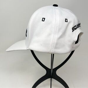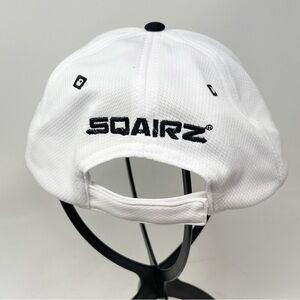 SQAIRZ Men’s White Black Ball Cap Hat Adjustable white Polyester Square Bill OS. Good pre-owned condition. See photos.
