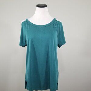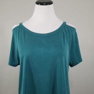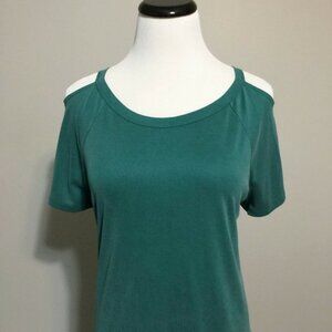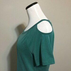 S.R. By Sweet Rain Cold Shoulder Tee Shirt M Womens Green Top Flirty Coquette