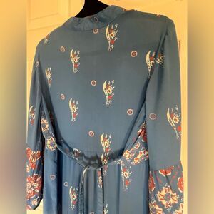 S.R. Fashion Vintage Blue Floral Midi Dress Sz Large