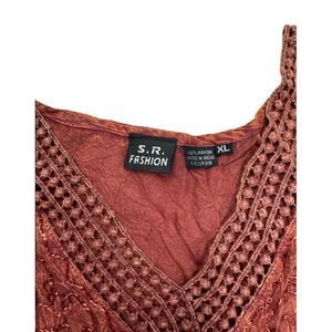 S.R Fashion Women's Orange Sleeveless V Neck Embroidered Maxi Dress Size Xl