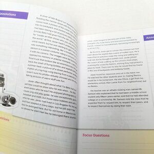 This SRA FLEX Literacy Interactive Reader is designed for secondary students working on reading comprehension and literacy skills. The workbook format includes engaging reading passages paired with thoughtful comprehension questions that encourage students to analyze text, make inferences, and develop critical thinking abilities. Each selection includes interactive elements like "Summary of Text" sections and focus questions that guide students through close reading strategies. Ideal for intervention programs, homeschool curricula, tutoring sessions, or supplemental reading practice.