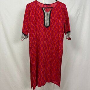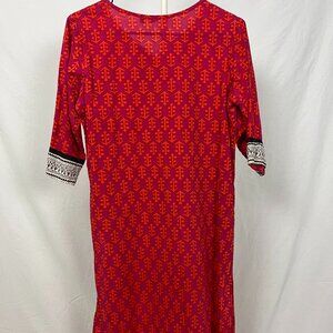 SRISHTI Pink Orange Indian Kurti Dress 3/4 Sleeves Intricate Patterns Size M