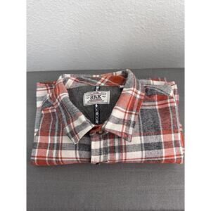 SRK Orange Grey White Plaid Long Sleeve Button Up Warm Flannel Shirt Mens XL