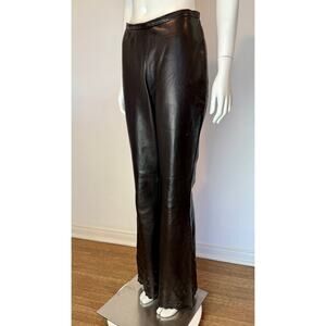 Step out in style with these stunning Ralph Lauren Runway flared pants from the Spring/Summer 2000 collection. Crafted from luxurious black perforated leather, these pants offer a unique blend of sophistication and edge. Perfect for making a statement, whether you're attending a high-fashion event or elevating your everyday look.