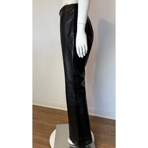 S/S 2000 Ralph Lauren Runway Black Perforated Leather Runway Flared Pants