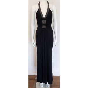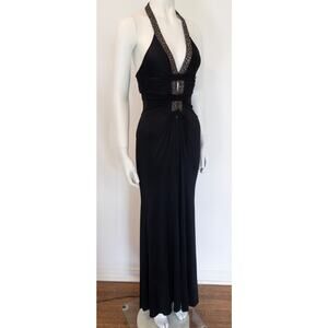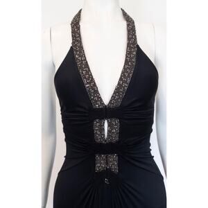 S/S 2005 Roberto Cavalli Black Rhinestone Sheer Bodycon Stretch Halter Gown