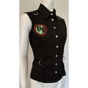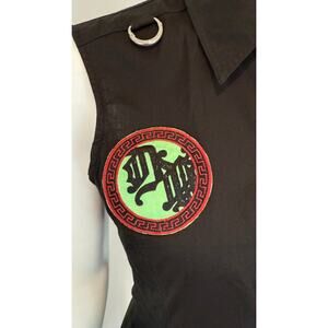 S/S 2005 Versace by Donatella Black Cotton Chaos Couture Patch Sleeveless Top