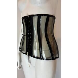 Stunning Dolce & Gabbana corset from the Spring/Summer 2007 collection. Appeared on the runway. Crafted from high-quality patent leather with unique clear vinyl elements, this piece is a true statement item.