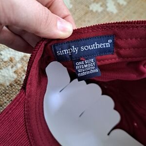 Simply Southern deep red maroon corduroy baseball hat with multicolor BE THE GOOD on front. Adjustable sizing with fasten at back of head. One sizes fit most. 100% cotton. NWT