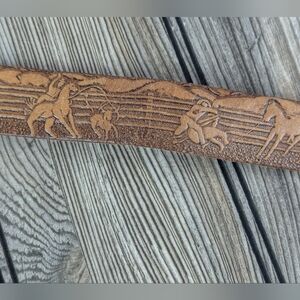 SS Double S Western Children's Leather Belt With Roping Cowboy & Horse Embossed