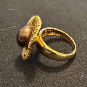 SS Gold Tone Brown Pearl Veronese Flower Ring Size 8.75
