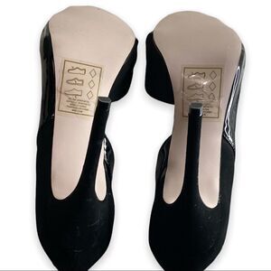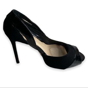 SS Signature by Sangria Black Faux Patent Leather Faux Suede Peep Toe Stilettos