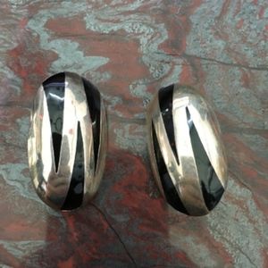 These beautiful tiger-striped earrings are made of solid sterling silver. They are silver and black clip ons with padding on the backs.
