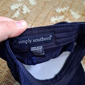 Simply Southern deep navy corduroy baseball hat with blush pink WKND traced in gold on front. Adjustable sizing with fasten at back of head. One sizes fit most. 100% cotton. NWT