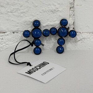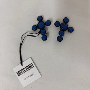 SS20 Moschino Couture Jeremy Scott Picasso Cross Blue Clip On Earrings