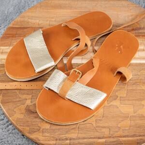 SSEKO GENUINE! WOMENS USA 7 STONE GRAY & CARAMEL SARAH SANDALS
