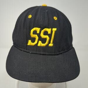 SSI Snapback Hat Black One Size Adjustable Embroidered Vented Holes DeLONG