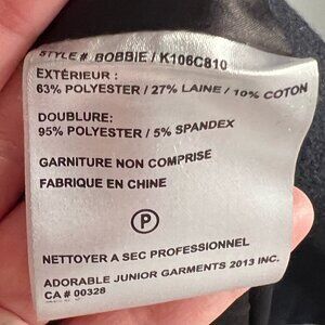 Exterior: 63% Polyester, 27% Wool, 10% Cotton