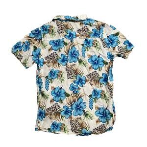 SSLR Hawaiian Shirt Blue Floral Tropical Jungle Hawaii Beach Casual Mens S