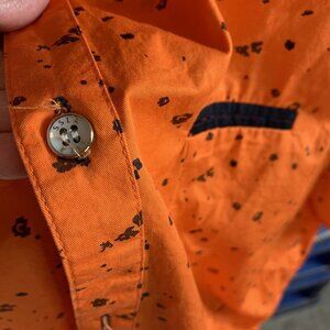 SSLR Mens Collection Orange & Navy Accents Button Down Casual Shirt Large. Condition is Pre-owned. Shipped with USPS First Class Package.