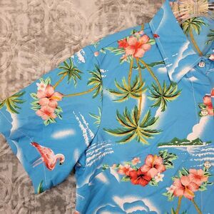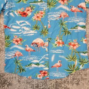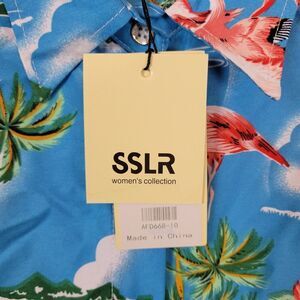 SSLR Shirt Women's Small Blue Hawaiian Flamingo Tropical Button Down NEW